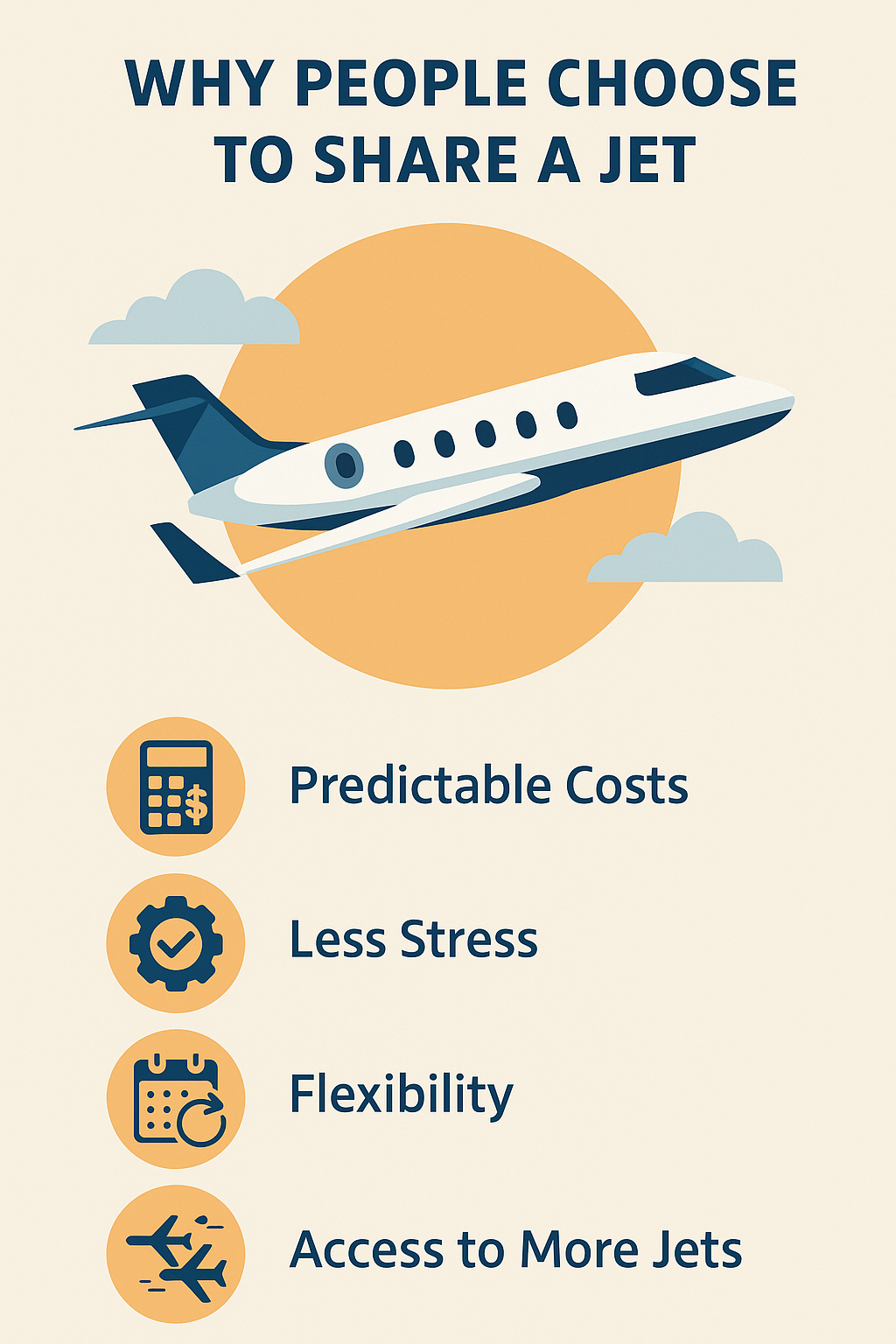 Think of it like joining a team of jet owners who each take turns using the plane. You still get private cabins, flexible schedules, and professional pilots — but you pay only for your use.